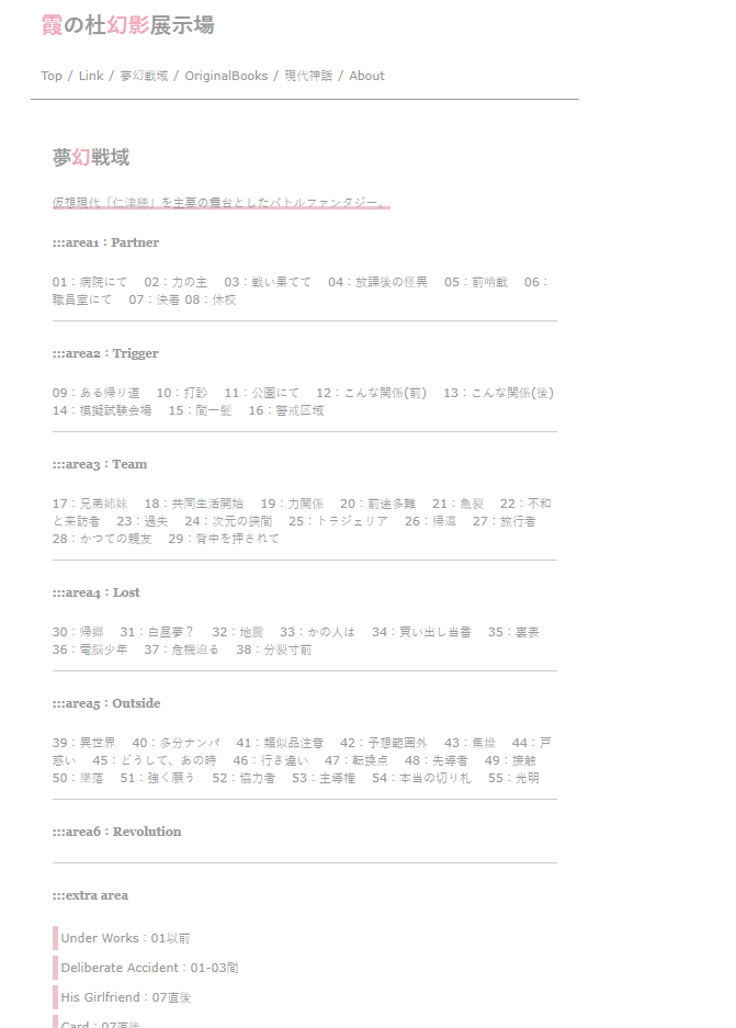 ある程度楽できる香月亭側の切り替え処理にだって時間かかっているのに、本当の改装はどうなることやら……(でも今の画面サイズに合致していないのと、幅指定とフォント指定が無茶苦茶なのが落ち着かないので早めにどうにかしたい…!)